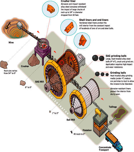 GSI wanted to show the lines of consumable products they make in the context of the ore grinding process.