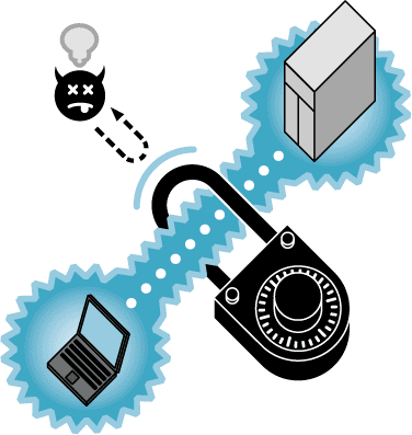 This simple graphic visually makes the point that the client's technology repels unwanted hackers from private wireless transmissions.